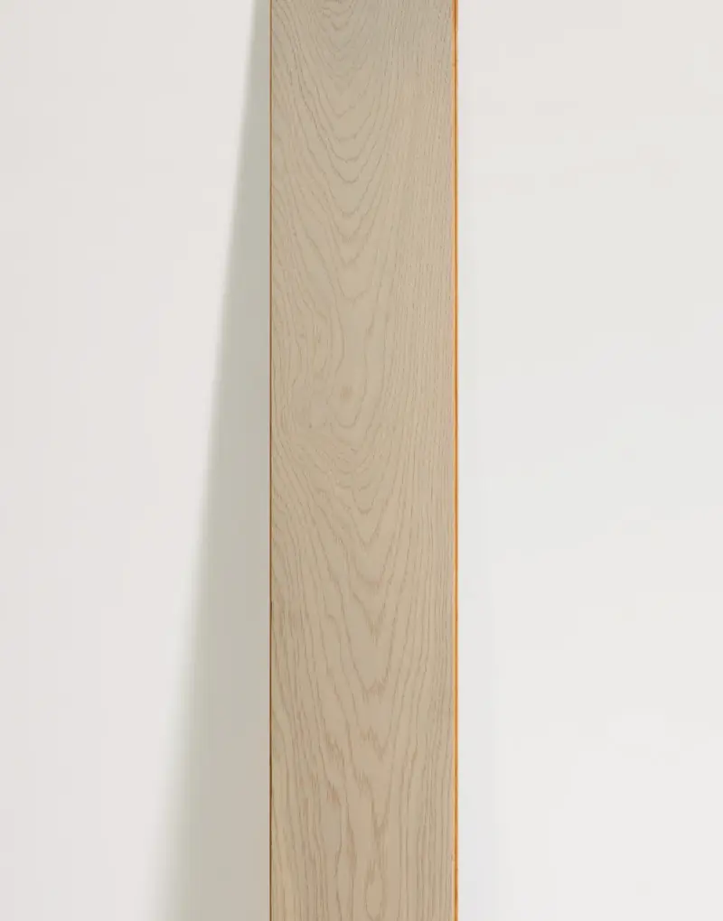 พื้นไม้เอ็นจิเนียร์ 3 ชั้น ถูกออกแบบอย่างพิถีพิถันเพื่อแสดงความงามของไม้ธรรมชาติ พร้อมเสริมความแข็งแรงและทนทานในระยะยาว แกนกลางผลิตจาก ไม้สนสปรูซคุณภาพสูง ซึ่งรองรับน้ำหนักได้ดีและมีคุณสมบัติต้านปลวกตามธรรมชาติ เพิ่มความสามารถในการกันความชื้นด้วย ฟิล์มป้องกันพิเศษ เหมาะสำหรับการใช้งานในหลายพื้นที่ โครงสร้างลายไม้ แบบเส้นตรง (Straight Grain) ช่วยเพิ่มเสถียรภาพ ลดการบิดงอ และเพื่อความปลอดภัยของคุณและครอบครัว เราใช้ กาวที่มีฟอร์มาลดีไฮด์ต่ำระดับ E1 ตามมาตรฐานยุโรป ซึ่งช่วยลดสารระเหยในอากาศภายในบ้าน