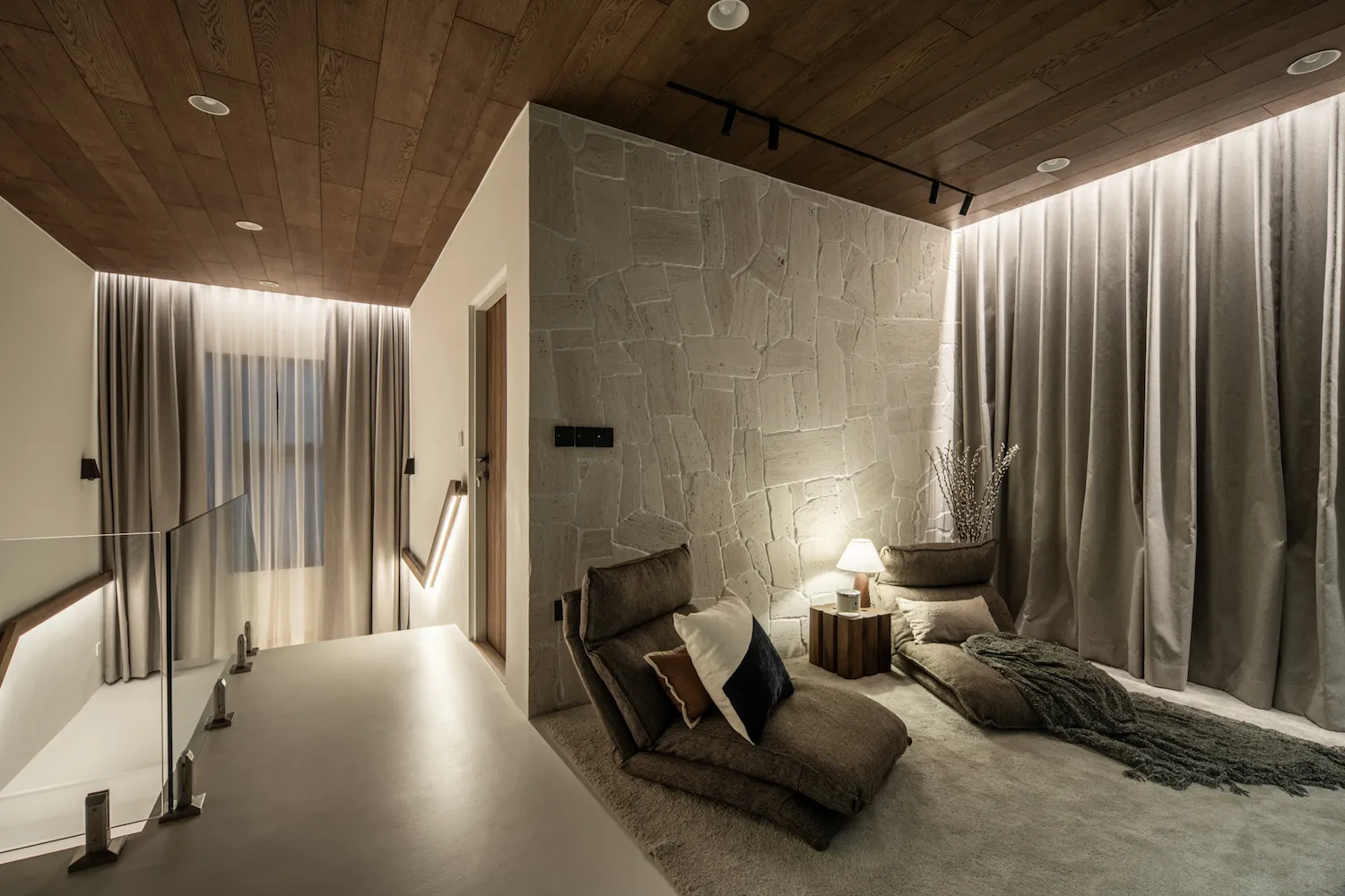 บ้านหลังนี้จึงไม่ได้ถูกออกแบบให้เป็นแค่ที่อยู่อาศัย แต่มันถูกสร้างให้เป็น พื้นที่แห่งความคิดสร้างสรรค์ พื้นที่ที่วัสดุทุกชิ้น พื้นผิวทุกผิวสัมผัส และรายละเอียดทุกอย่าง มีเหตุผลของมัน เราเลือกใช้วัสดุที่มี Texture มีความไม่สมบูรณ์แบบแบบธรรมชาติ เพราะสำหรับเราความสวยงามของวัสดุจริง ๆ ไม่ได้อยู่ที่ความเนี๊ยบ แต่อยู่ที่ ความจริงของมัน